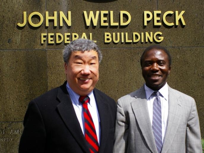 | From Left to Right - Charleston C. K. Wang, Esq., Professor Mary Ellen O'Connell & Dean Gordon A. Christenson, Emeritus University of Cincinnati College of Law |