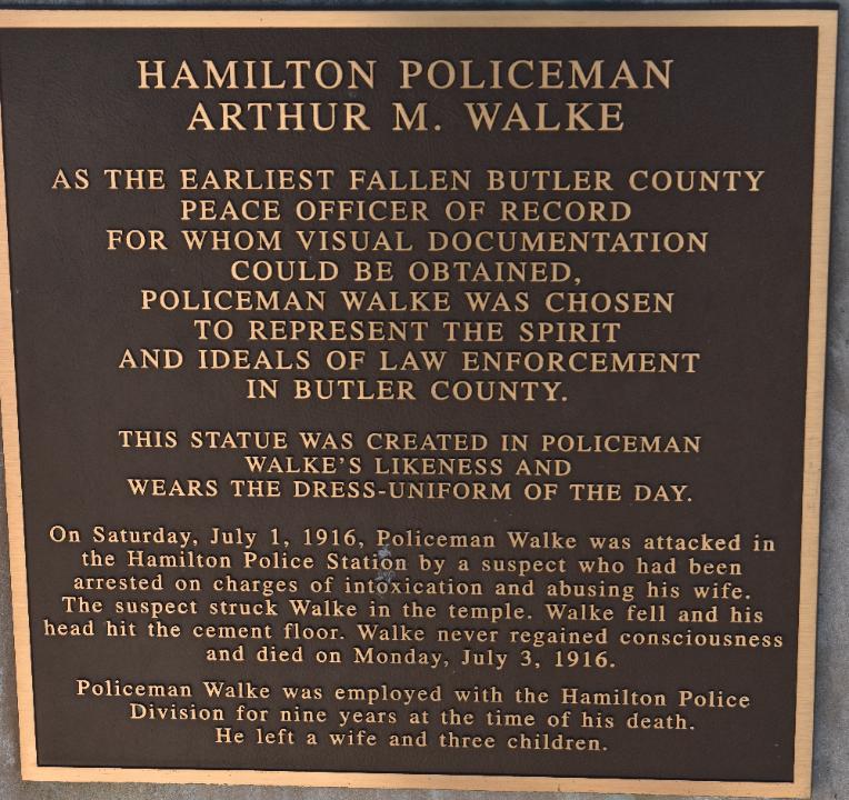 POLICE MONUMENT BUTLER COUNTY JAIL HAMILTON, OHIO Hamilton Police Officer Arthur M. Walke