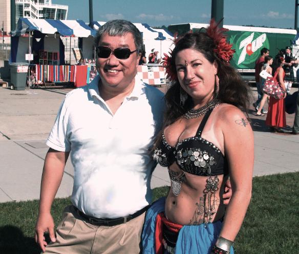 VINTAGE PHOTO: WITH AN ALL AMERICAN BELLY-DANCER AT LIBERTY IN THE SUNSHINE OUTSIDE OF THE FREEDOM CENTER