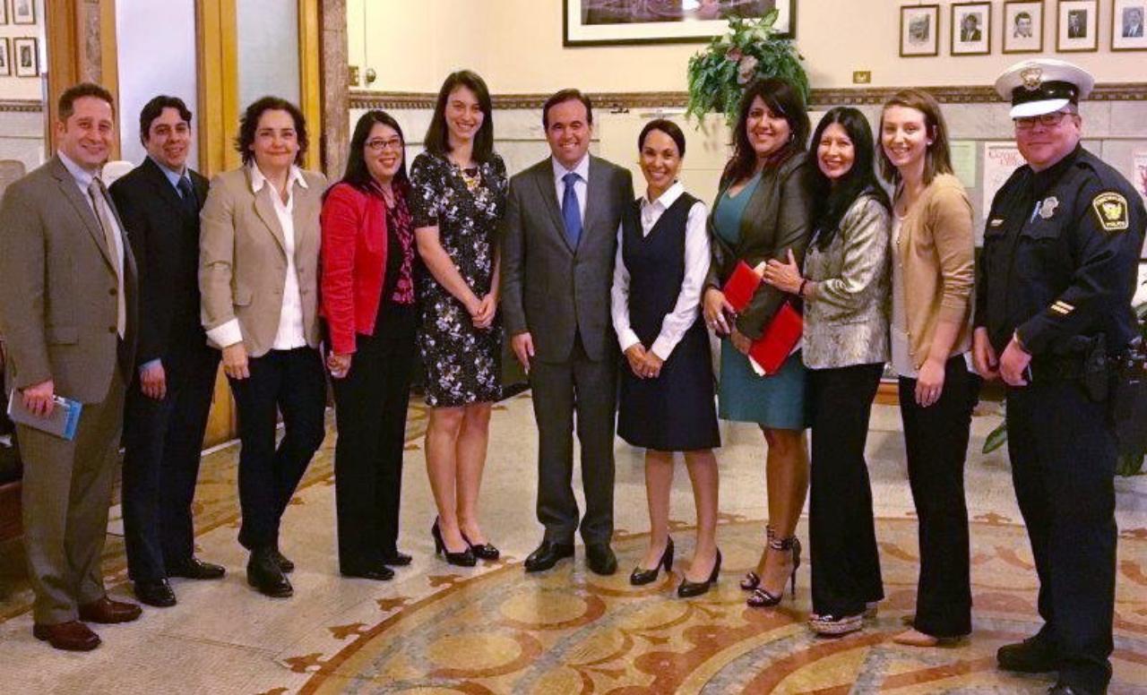 LEILA KUBESCH MEETS WITH MAYOR JOHN CRANLEY RESPECTING HER "BULLYING STOPS NOW!" TRAINING PROGRAM, WITH MEMBERS OF THE LATINO AMERICAN COMMUNITY. THE JAPANESE AMERICAN CITIZENS LEAGUE AWARDED LEILA A LEGACY GRANT FOR HER WORK AGAINST BULLYING IN SCHOOLS. FOR MORE INFORMATION ON "BULLYING STOPS NOW!" CLICK HERE