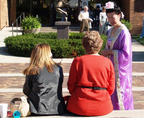 | Photo above: A Chinese lady in the court dress of the Tang Dynasty (618-907 CE) answers questions from visitors to MIDDFEST CHINA. This delightful festival was held in Middletown, Ohio. |